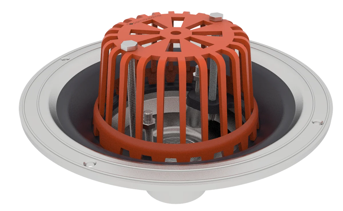 The aluminium vertical spigot roof outlet is a lightweight outlet that ensures a watertight connection between the water/damp proofing membranes and the drainage pipework.