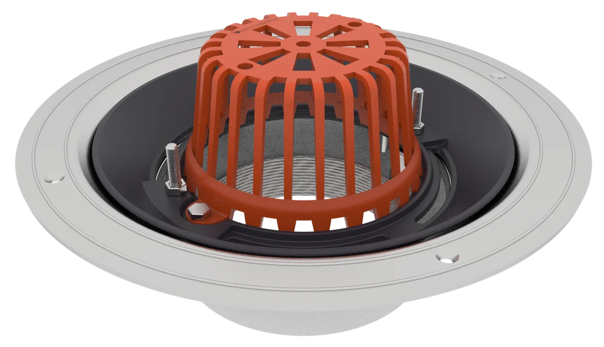 The aluminium vertical spigot roof outlet is a lightweight outlet that ensures a watertight connection between the water/damp proofing membranes and the drainage pipework.
