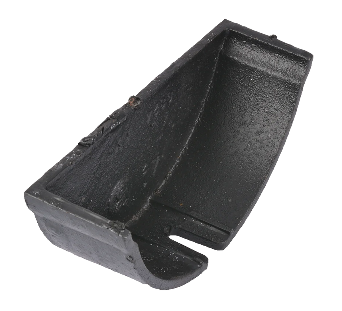 Cast iron half round beaded gutter stopend is part of a complete system that is attached to a roof of a house or building that collects and directs rainwater away from the roof and eaves into a vertical pipe discharge system