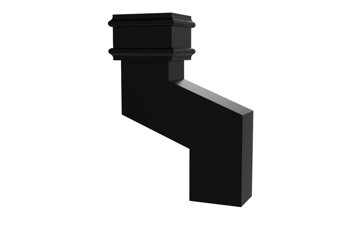 Rectangular rainwater pipe offsets are used to divert the pipework following the contours of the building by the projection distance