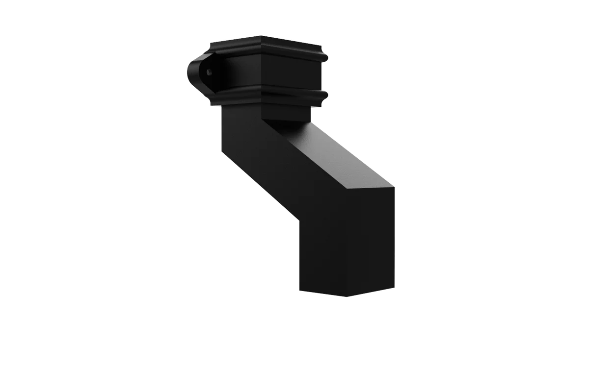 Rectangular rainwater pipe offsets are used to divert the pipework following the contours of the building by the projection distance
