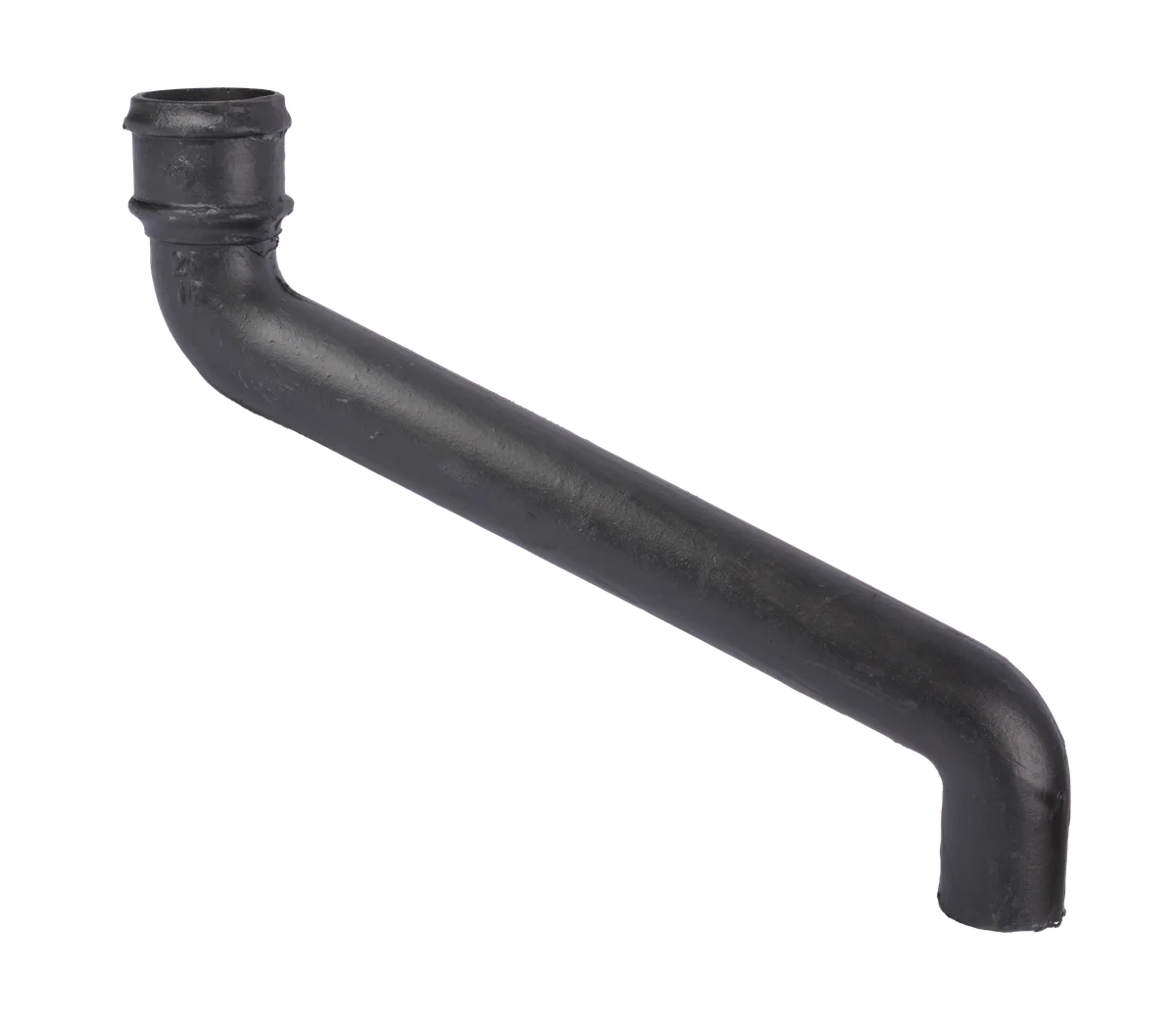 Circular pipe offset fittings makes it possible to connect the vertical pipe system with the Classical cast iron gutter system horizontally draining the roof area on a building.