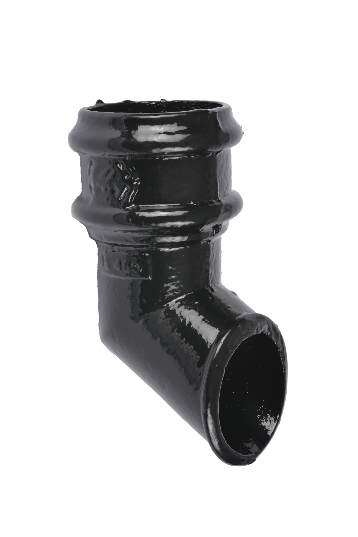 Cast iron circular rainwater shoes that are positioned at the base of the rainwater pipe run to direct the discharge flow of the rainwater into the main drain network at floor level without going direct into the drain