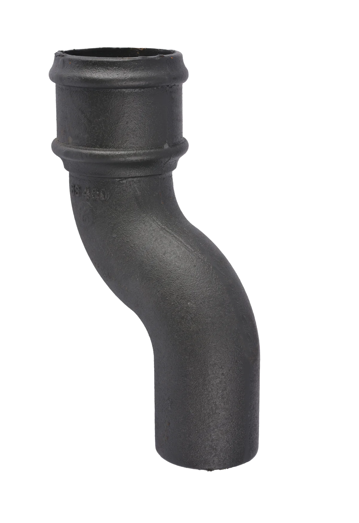 Cast iron circular pipe offset fittings makes it possible to connect the vertical pipe system with the cast iron gutter system horizontally draining the roof area on a building.