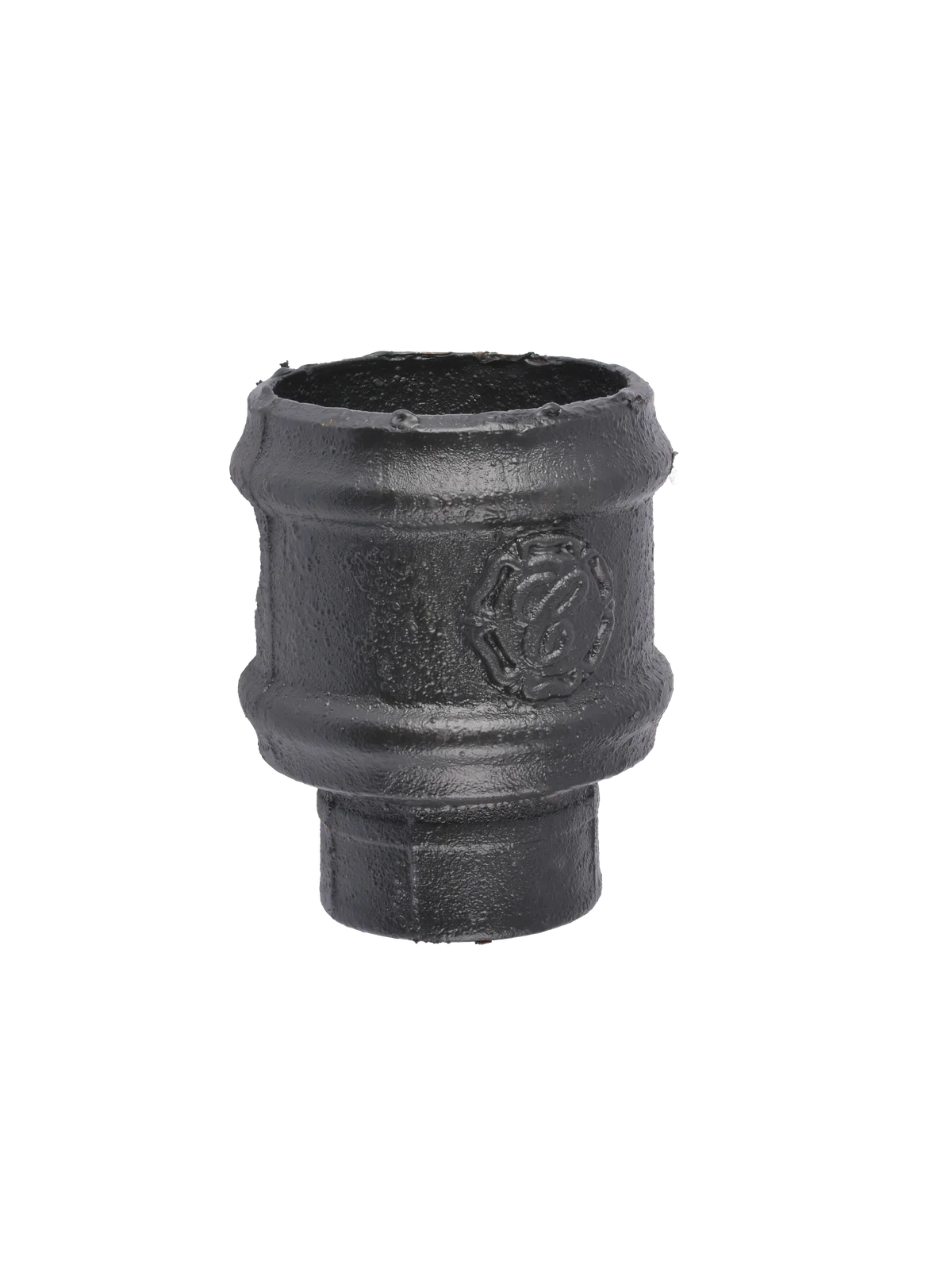 Rainwater cast iron circular loose pipe socket 100mm Eared that connects to cast iron rainwater pipe barrel for the vertical discharge of rainwater from a building into the below ground drainage network.