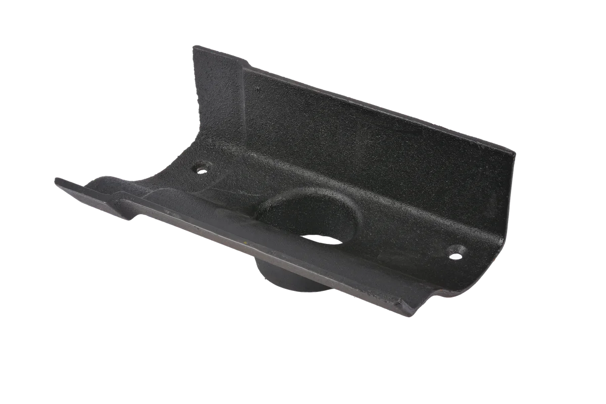 Cast iron Ogee gutter nozzle is part of a complete system that is attached to a roof of a house or building that collects and directs rainwater away from the roof and eaves into a vertical pipe discharge system.
