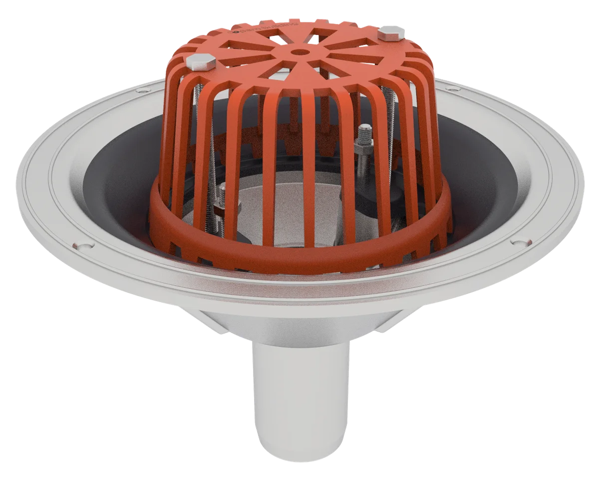 The aluminium vertical spigot roof outlet is a lightweight outlet that ensures a watertight connection between the water/damp proofing membranes and the drainage pipework.