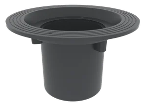 The VortX cast iron vertical shower drain body has a unique flange design with 4 identification rings that provides a key for the waterproofing membrane or final floor finish, and has dimples to assist drilling location for fixing to the structural floor.