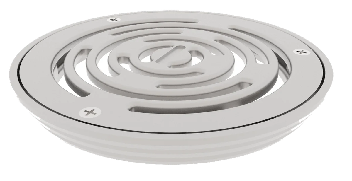 VortX 150mm stainless steel decorative circular gratings with a K3 load class. For use with vinyl floor finishes supplied with standard screws. To allow access of water from showers.